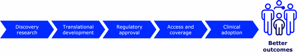 This process is complex, to say the least. There are safety checks at every step of the way. Data are scrutinized, and preclinical and clinical testing must meet ethical standards. In fact, many new drugs and devices don’t make it very far in the pipeline—and those that do take a long time to get there.