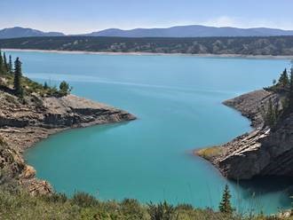 Day 7 is supposed to be a ride into Jasper National Park; however, wildfires just north of Jasper have shut everything down in that area. Our guides were quick on their feet and came up with an impromptu ride along the Saskatchewan River and into Abraham Lake. The first leg rides along the river as it necks down and expands across the rocky terrain. This part of the route is flat and I get to the break point fairly quickly. There is another rock with a “seat” cut-out which is perfect for stretching out to relax.
