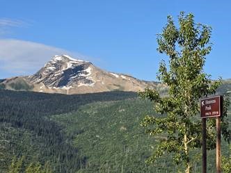 I did not know this, but the area we are riding is a joint national park between US and Canada. Both flags are flown at the rest stops and ranger stations. We scurry downward a bit and stop for lunch at a campground. It is about 26 miles in, but the legs are a little squishy. No problem, after lunch is a steep downhill section. I tuck in and accelerate up to 44 mph. But every down has an up and there was another climb. This one was not quite as long, but it felt harder given it was toward the end of the ride. The summit offers a bird’s eye view of the lake and our hotel below in the valley. I jump on the downhill portion toward the finish and get to ride right along the lake with craggily mountains in the distance. The farthest distance ride (to date) is in the books.