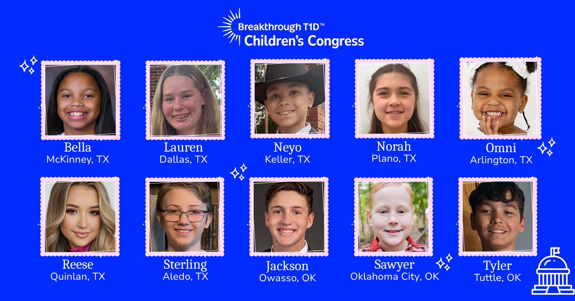 Breakthrough T1D North Texas and Oklahoma is excited to introduce our delegates for the 2025 Children’s Congress. Breakthrough T1D’s 13th Children’s Congress will take place from July 7 – 9, 2025, in Washington, D.C.