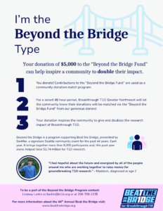 It’s not too late to register and start fundraising for this year’s Beat the Bridge for Breakthrough T1D! Whether you’re racing the 8k to “Beat the Bridge”, taking a scenic 3 Mile Walk, or sprinting the 1 Mile Fun Run, you’ll be part of an unforgettable day through the University of Washington campus, ending in Husky Stadium.