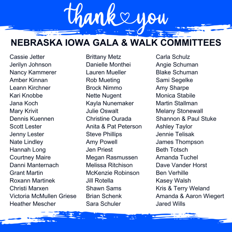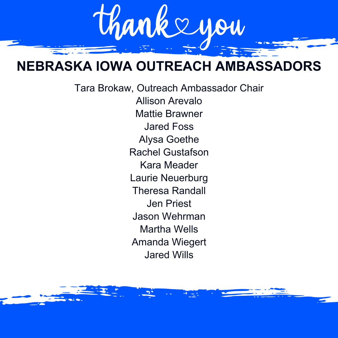 Because of our volunteers, cures are not a matter of if, but when. We are honored to partner alongside you to accelerate life-changing breakthroughs for all people with T1D. From all of us at the Nebraska and Iowa Chapter, thank you for the progress you have helped us make, and the progress that is to come.