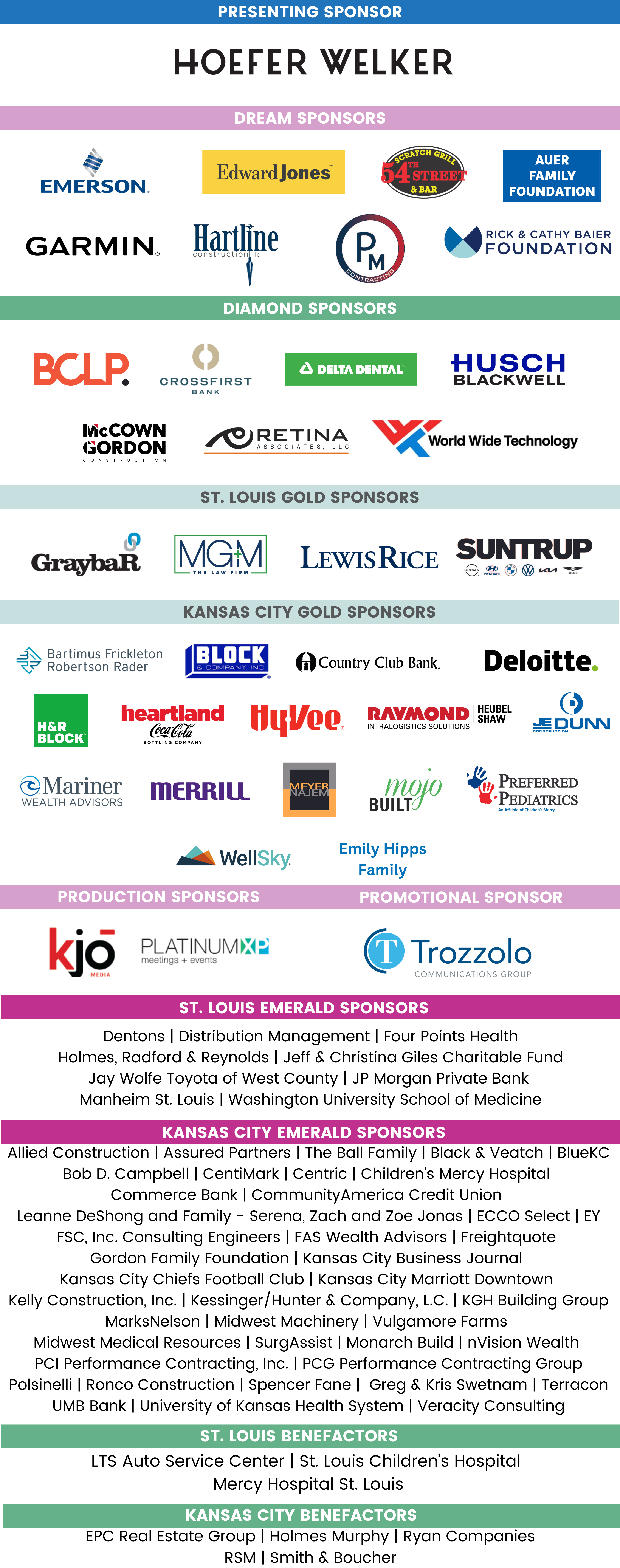 We would like to extend our thanks to our incredible community leaders and volunteers. Thank you to our St. Louis and Kansas City Community Board of Directors, Dream Gala Committee Members, our outstanding speakers and emcees, and all of our volunteers! Your hard work and dedication were instrumental in creating unforgettable experiences for all involved.