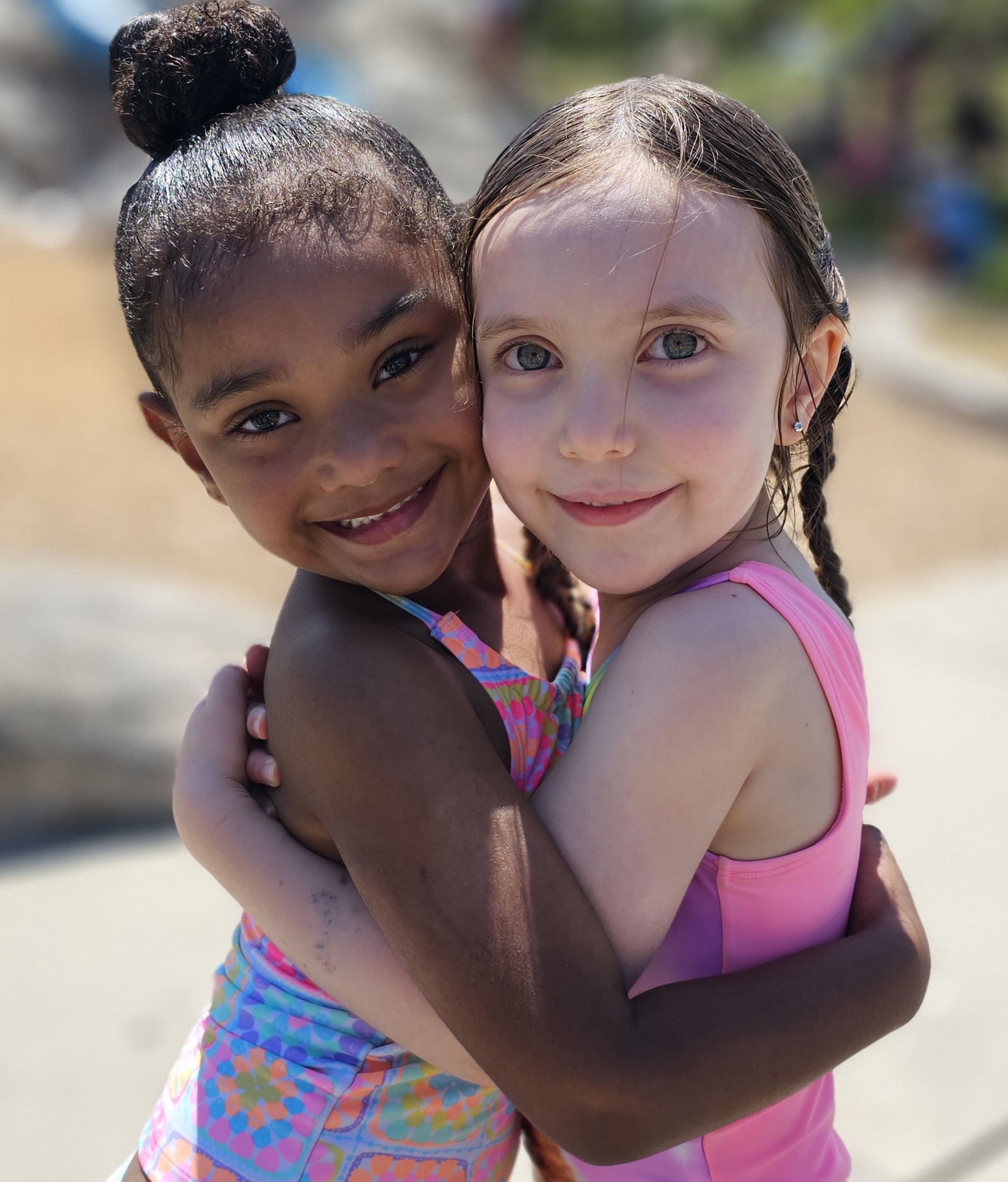 We first met over the summer at a playdate for kids with T1D. It was a sunny day at a water park, and we were a little bit nervous because we didn’t know anyone. But then, something amazing happened – we spotted each other’s diabetes gear! Mikala had her continuous glucose monitor, and Remi had colorful stickers on her pump. We talked and splashed in the water, and suddenly, having T1D wasn’t lonely anymore.