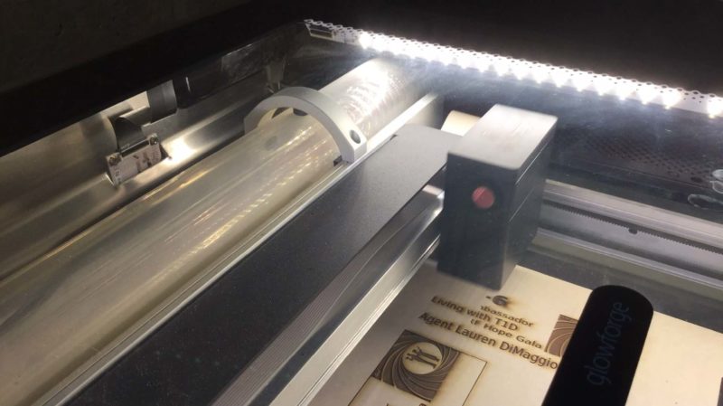 May 17: Wow! I can’t believe the Hope Gala is in 2 days! Today, I have been making name tags for the Youth Ambassadors. Since my school has a Maker Lab with a laser cutter (it is so cool!), I volunteered to make the name tags. It has been fun to design them, but it has also been hard to go into the design and change the name and other information. Here is the laser cutter making them: