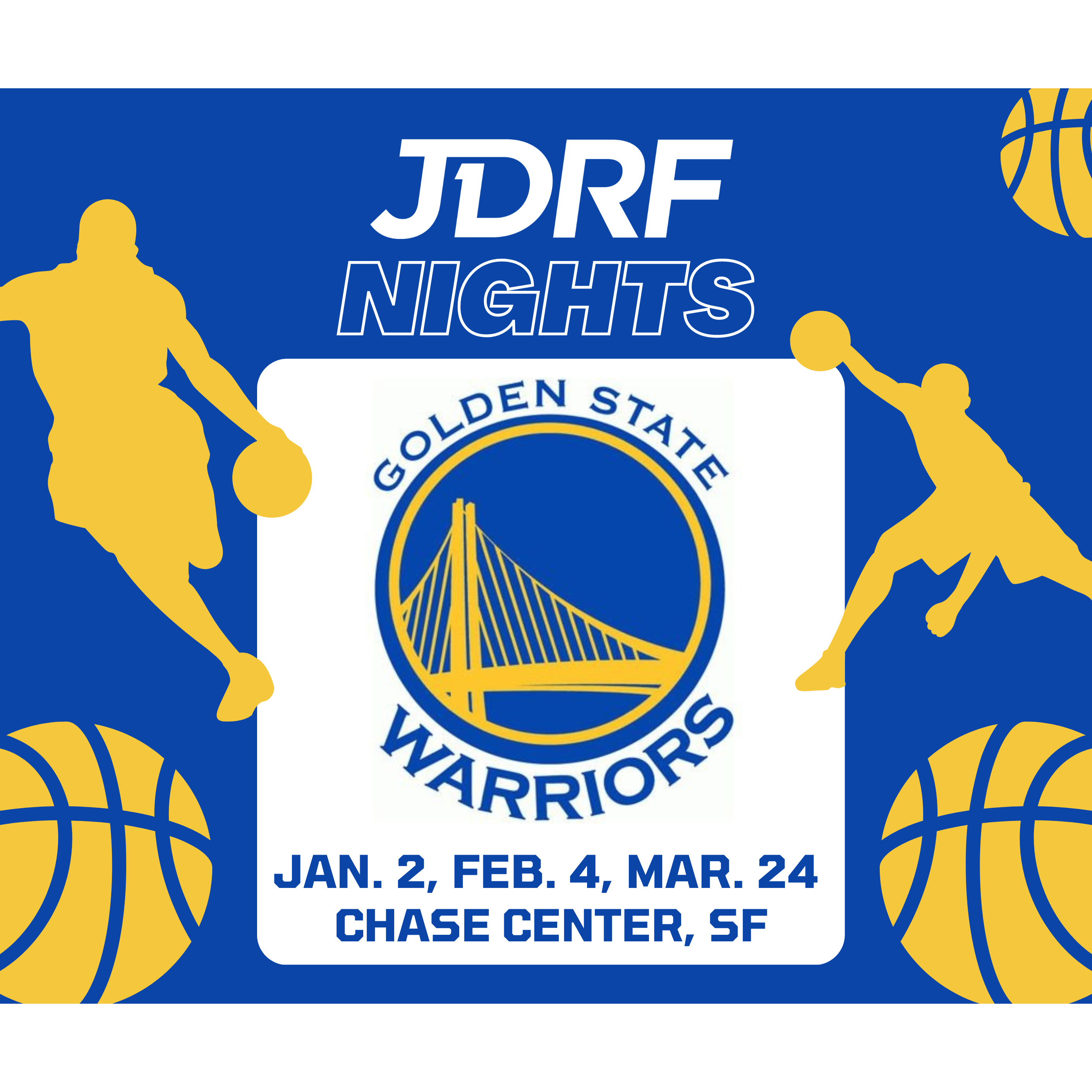 Gather your family and friends and join Breakthrough T1D at Chase Center for a Golden State Warriors game! Cheer on your basketball heroes with other members of the Breakthrough T1D community while supporting type 1 diabetes (T1D) research. The first youth participants to secure tickets will enjoy special fan experiences. A portion of each ticket sold will benefit Breakthrough T1D. Purchase your tickets here for the following games: