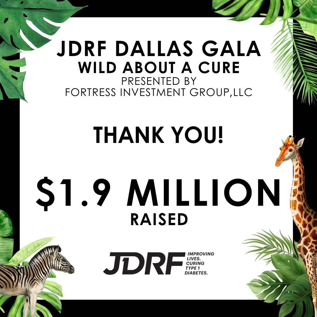 The Breakthrough T1D Dallas Gala: Wild About A Cure, presented by Fortress Investment Group LLC, on Saturday, April 20, was an incredible evening that raised over $1.9 million! Special thanks to the Gala Honorees, Kim and Jim Lites, the Gala Chairs, Lynsey and David Natinsky, and the Fund A Cure Chairs, Lane and Brian Olson, for their exceptional contributions to this amazing event!
