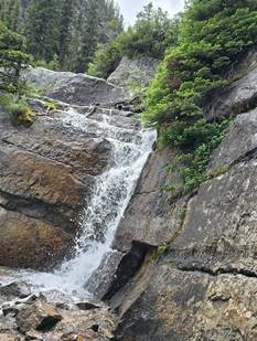 The path is a serene ride with pine and aspen trees lining each side of the street. Hardly any cars come by, so it is quiet and peaceful. I keep a vigilant eye out for another bear siting but don’t see more. Another member of our group has already seen three. A light drizzle begins to fall, enough to cool you off from working hard on the hills. With my legs squishy and sore backside, I tackle the hills slowly which gives me more of a chance to scan the forest areas. Eventually I make it through to the Lake Louis Inn for the ride completion.