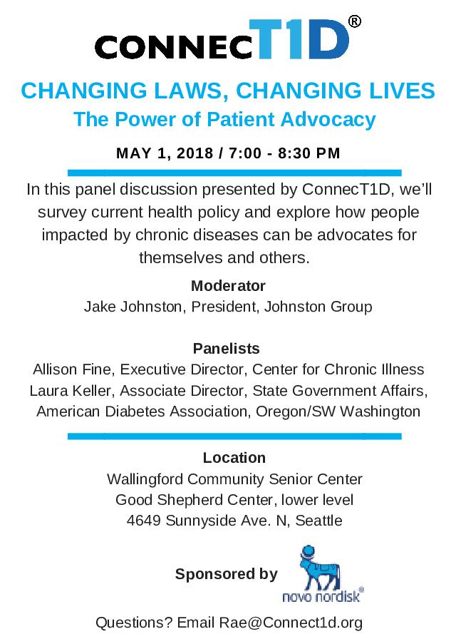In this panel discussion presented by ConnecT1D, we’ll survey current health policy and explore how people impacted by chronic diseases can be advocates for themselves and others.