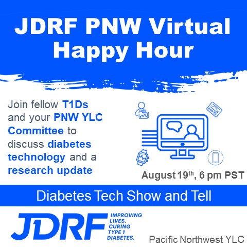 Join the Breakthrough T1D Pacific Northwest YLC on August 19th at 6pm PST for a Virtual Diabetes Happy Hour! Participate in the tech Show and Tell as well as learn about participating in diabetes clinical trails. This event is free and open to all! Registration is required.