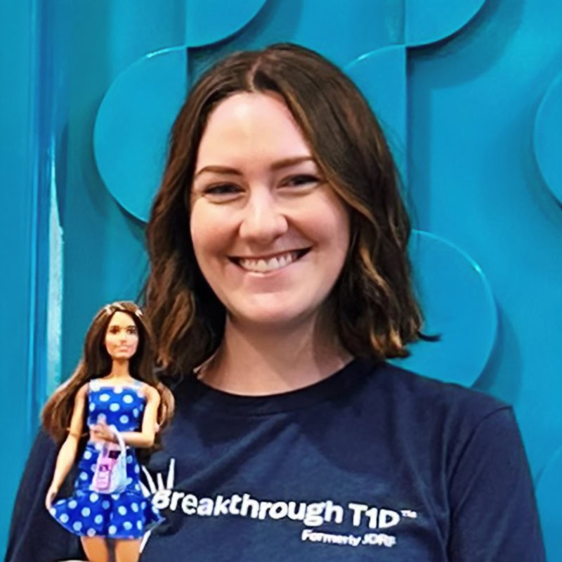 Emily: “As an adult living with T1D, being part of creating Barbie with T1D with Mattel, our team at Breakthrough T1D, and the T1D community was a dream come true. When Mattel asked what a day with T1D could look like, I shared a photo of my CGM graph, and now that same photo is on Barbie’s phone. Seeing my own (very real!) CGM reading on Barbie’s phone is something that will always feel surreal.”