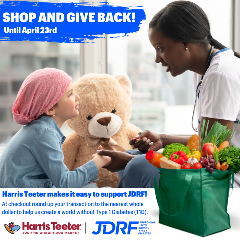 We’re proud to be a part of Harris Teeter’s Health Partner Round Up Campaign! Please Round Up at checkout to support Breakthrough T1D now until April 23, 2024. Find your nearest participating store here.