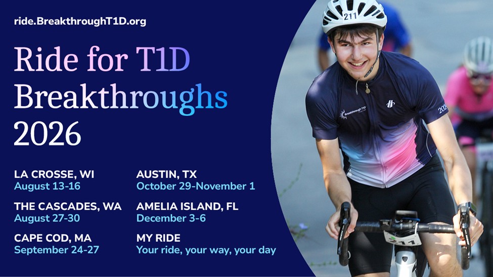 It’s time for Breakthrough T1D Ride, where every pedal stroke powers research, advocacy, and support to improve lives until we find a cure! This inspiring, high-energy program welcomes cyclists of all skill levels to raise T1D awareness and accelerate our journey to a world without T1D. Claim your spot at one of our upcoming Rides today! With coach-led, supportive training rides throughout the year, there’s no better time to find your Ride community.