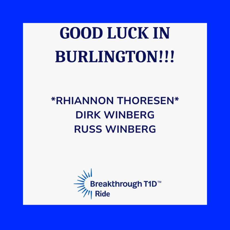 Good luck on your ride, enjoy connecting with one another & our T1D community and we cannot wait to see you cross the finish line safe, sound and smiling!