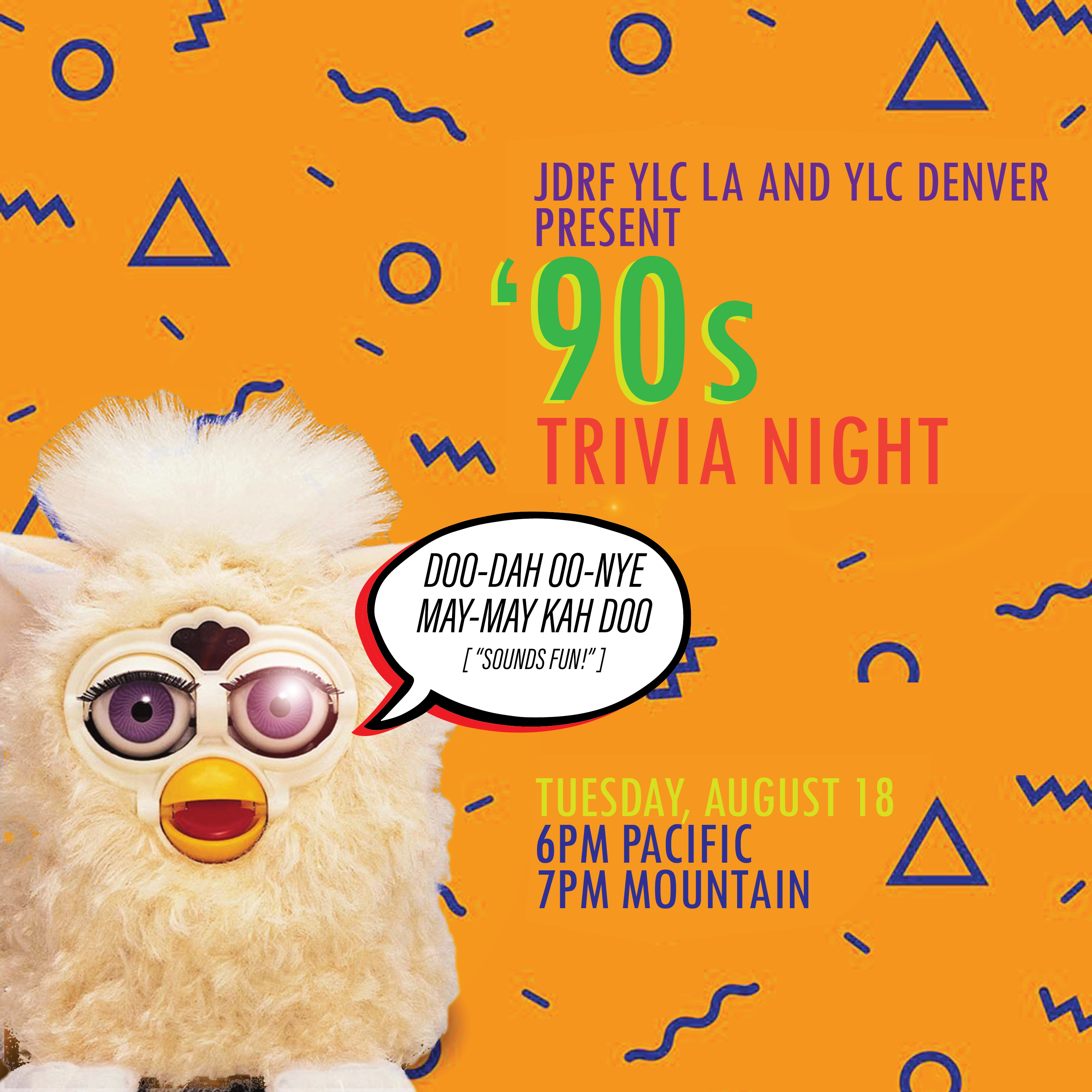 Join us for a Virtual Trivia Night on Tues., Aug 18th at 6 pm PT. This will be a 90’s themed trivia event over Zoom and we will use the Kahoot Trivia Game platform. Questions will be curated by the LA & Rocky Mountain Chapter YLCs and our guest hosts will be Craig Stubing and Dave Holmes!